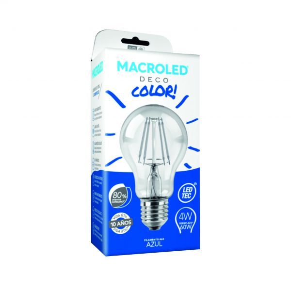 LAMPARA BULBO FILAMENTO DECO COLOR LED 4W E27 MACROLED