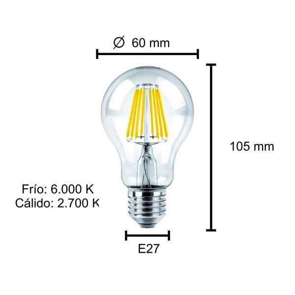LAMPARA BULBO FILAMENTO LED 8W E27 MACROLED