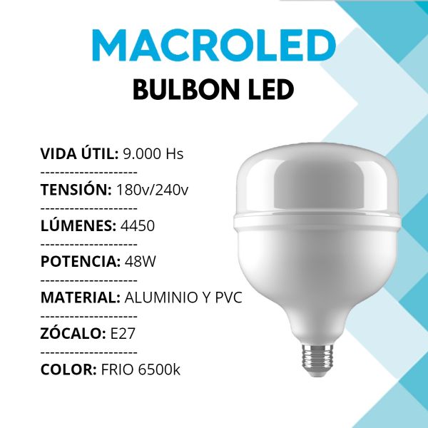 LAMPARA BULBON LED 48W E27 PVC 140X191MM MACROLED