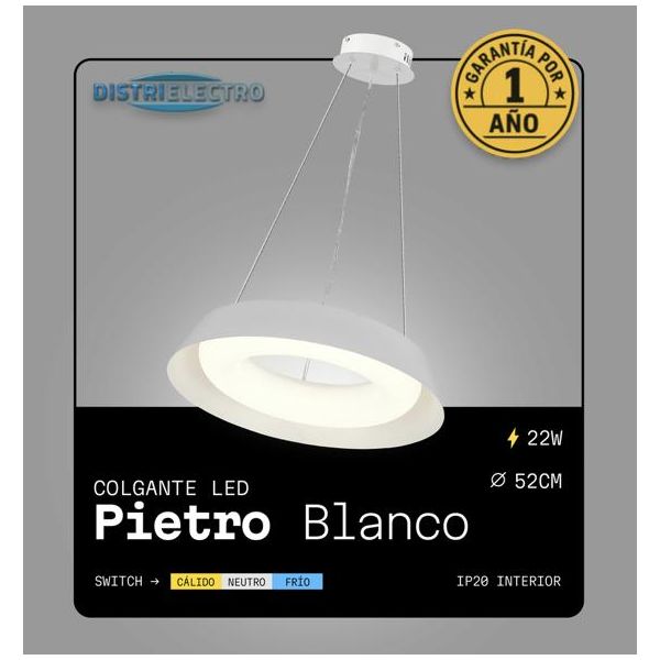 Lampara Colgante Diseño Pietro Blanca es un Aro colgante redondo para techo es una opciOn sofisticada para todo tipo de ambiente. De instalaciOn sencilla garantiza una experiencia sensorial, sin complicaciones.