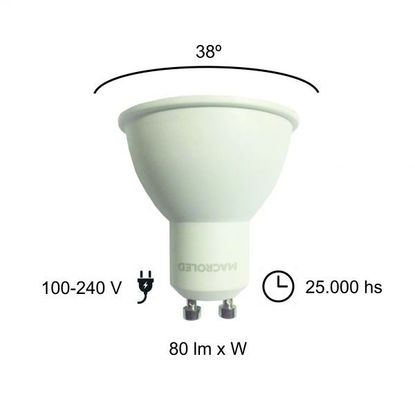 LAMPARA DICROICA LED 7W GU10 DE PVC MACROLED