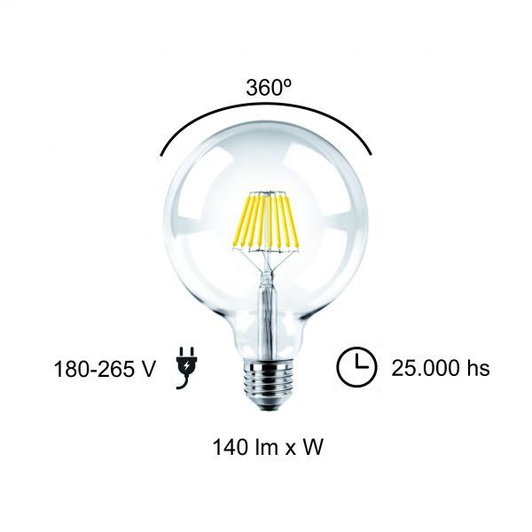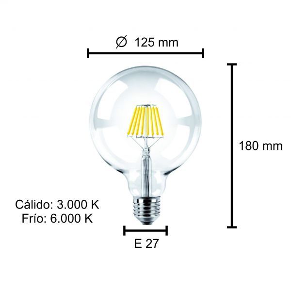 LAMPARA GLOBO FILAMENTO LED 8W E27 DIMERIZABLE MACROLED