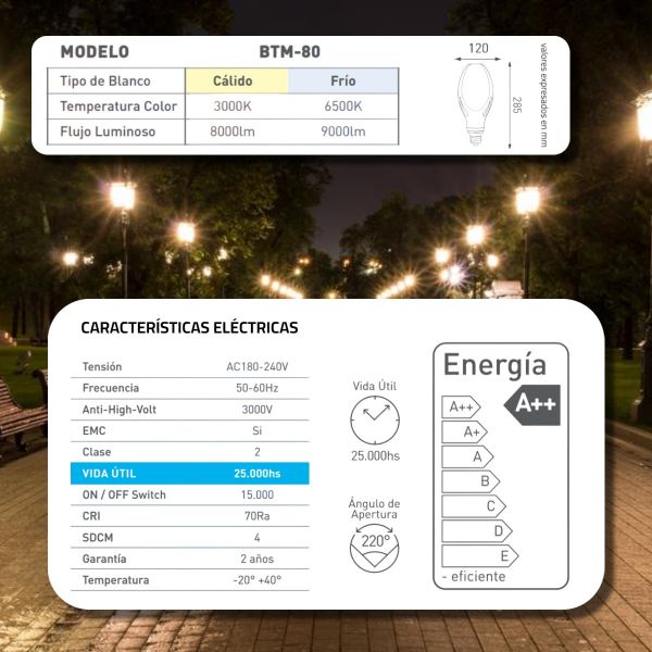 LAMPARA HIGHPOWER LED 80W E40 MAGNOLIA PVC/ALUM MACROLED