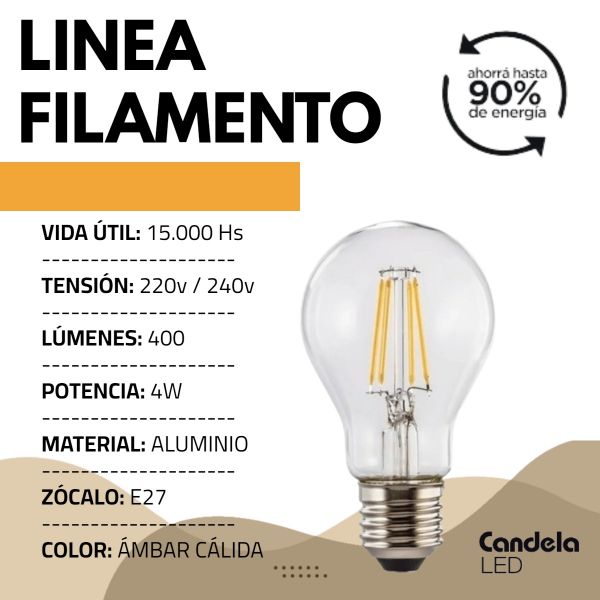LAMPARA LED CLASICA FILAMENTO 4W CANDELA