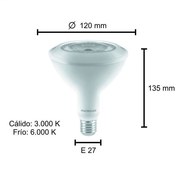 LAMPARA PAR 38 LED 20W E27 LUZ FRIO MACROLED
