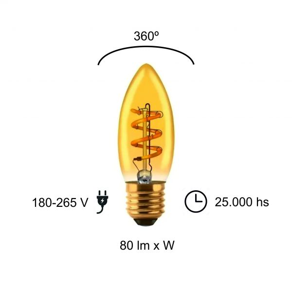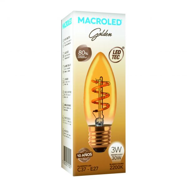 LAMPARA VELA GOLDEN FILAMENTO LED 3W E27 MACROLED
