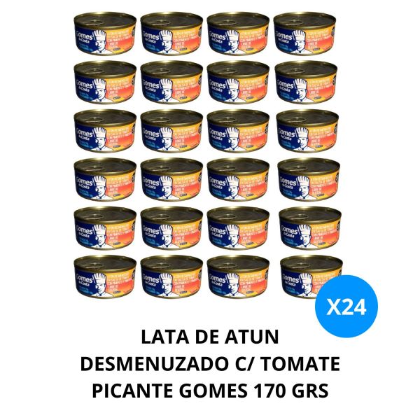 LATA DE ATUN DESMENUZADO C/ TOMATE PICANTE GOMES 170 GR X 24 UNIDADES