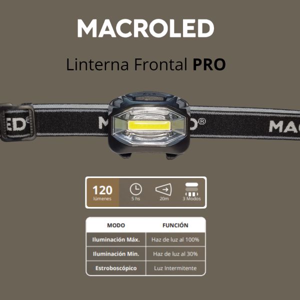 LINTERNA LED PRO MINERO 3W COB 120LM MACROLED