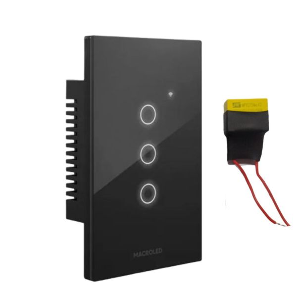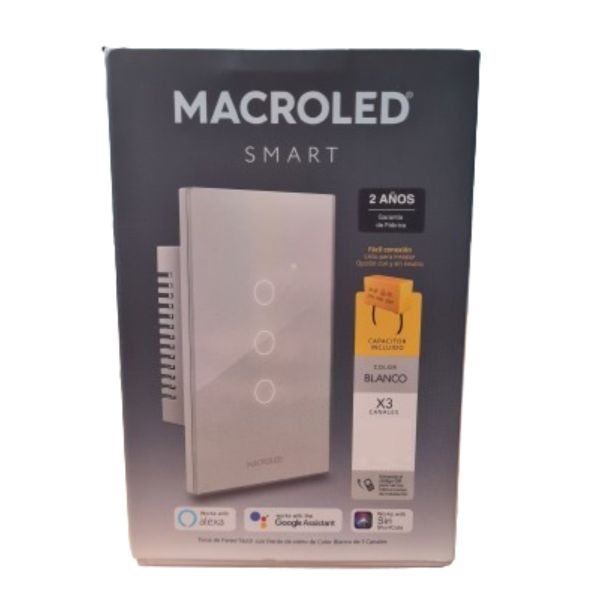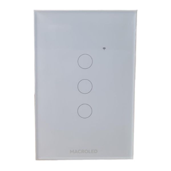 LLAVE LUZ PARED INTERRUPTOR WIFI TOUCH SMART 3 CANAL C/ CAPACITOR 7A MACROLED ROMA