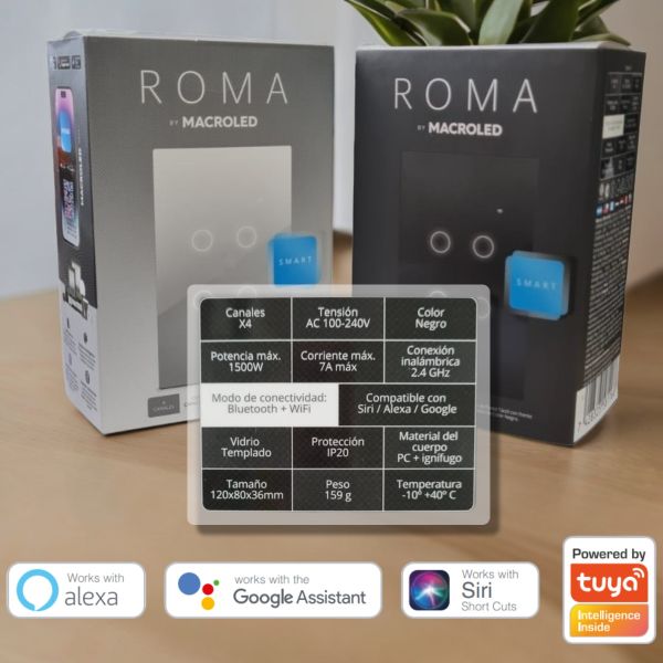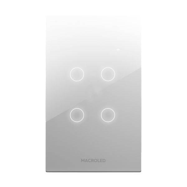 LLAVE LUZ PARED INTERRUPTOR WIFI TOUCH SMART 4 CANAL C/ CAPACITOR 7A MACROLED ROMA