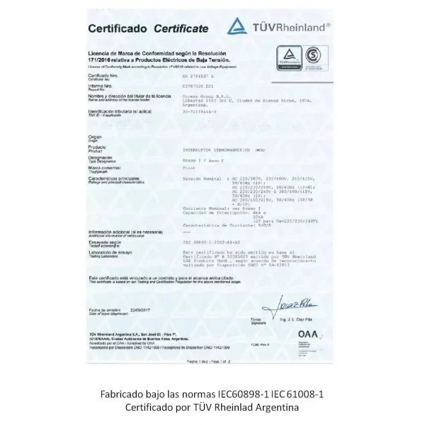 • caracteristicasUn interruptor termomagnético o llave térmica, es un dispositivo capaz de interrumpir la corriente eléctrica de un circuito cuando ésta sobrepasa ciertos valores máximos. Su funcionamiento se basa en dos de los efectos producidos por la circulación de corriente en un circuito: el magnético y el térmico.El dispositivo consta, por tanto, de dos partes, un electroimán y una lámina bimetálica, conectadas en serie y por las que circula la corriente que va hacia la carga.Al igual que los fusibles, los interruptores magnetotérmicos protegen la instalación contra sobrecargas y cortocircuito.