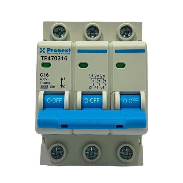 LLAVE TERMICA TETRAPOLAR 3X16A 3KA CURVA C PRONEXT