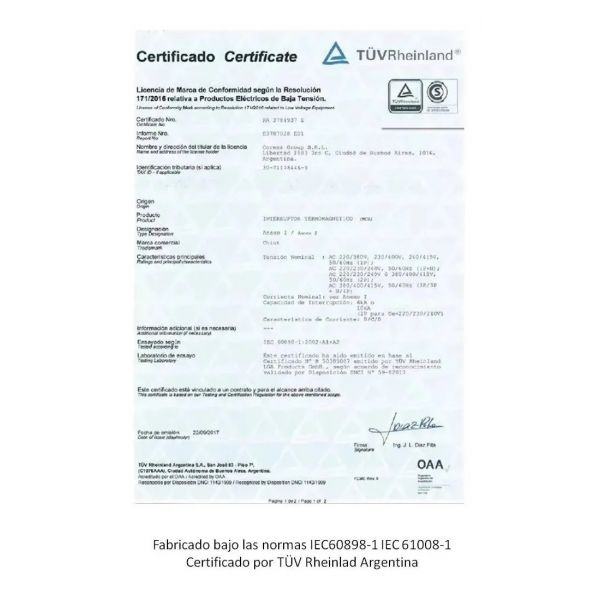 • Numero de certificado de seguridad electrica-1