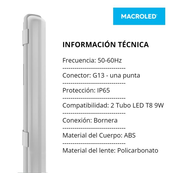 LUMINARIA ESTANCO P/ 2 TUBOS LED DE 9W 60 CM MACROLED