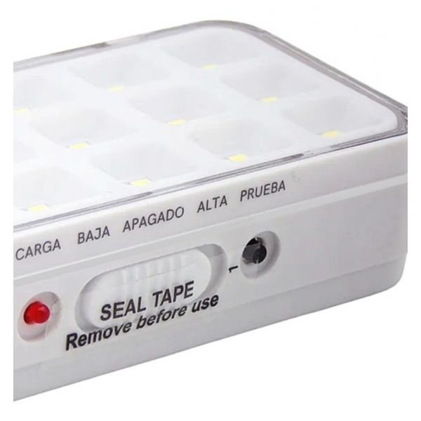 Luz de emergencia recargable 30 LED Candela. Enciende automáticamente al detectar un corte de suministro. Batería protegida contra sobrecargas. De fácil instalación en techo, pared o bien se puede transportar debido a su bajo pedo y cómoda medida.