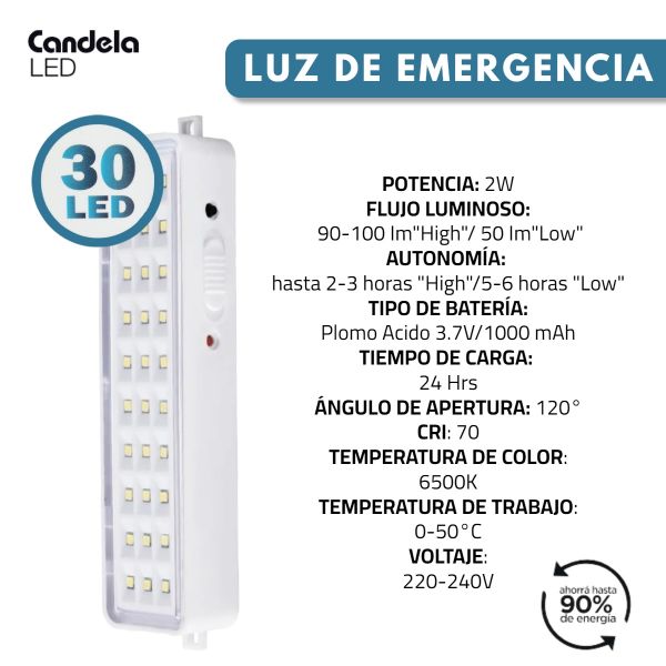 LUZ DE EMERGENCIA 30 LED AUTONOMA CANDELA