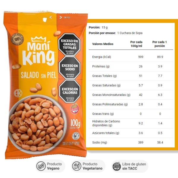 MANI SALADO MANI KING SIN PIEL 100 GR