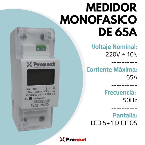 MEDIDOR MONOFASICO DE 65A PRONEXT