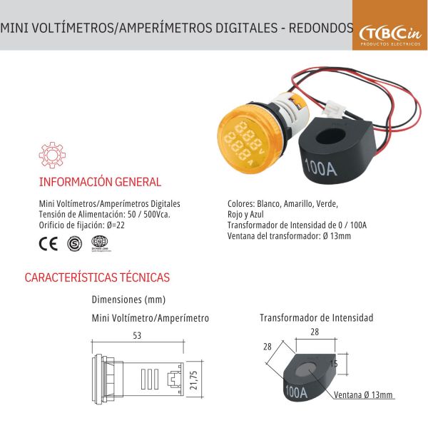 MINI VOLTIMETRO-AMP. DIGITAL COLOR AMARILLO - VOLTIMETRO-AMPERIMETRO TBCIN