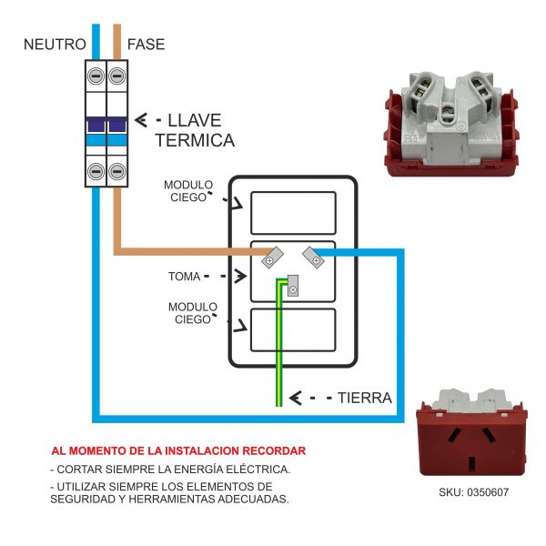 MODULO 1 TOMACORRIENTE TENSION DIFERENCIADA ROJO 10A LINEA URBANA EXULTT