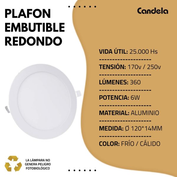 PANEL LED 6W REDONDO EMBUTIR CANDELA