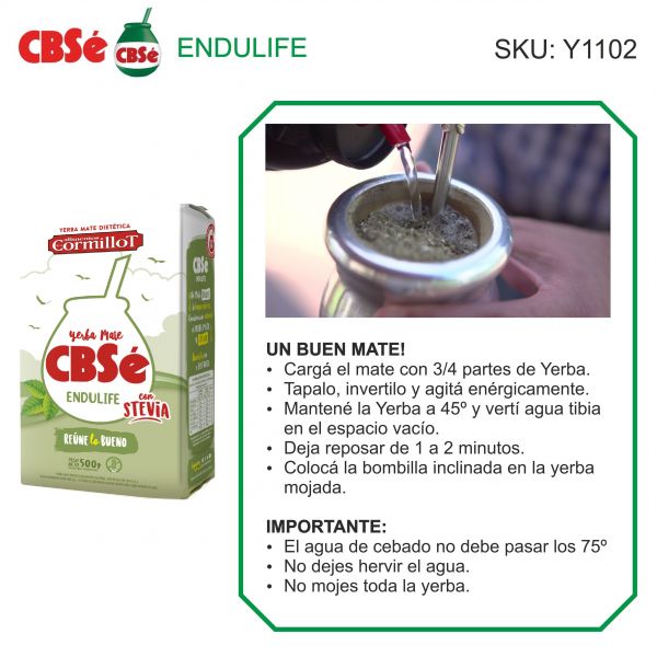 Cuando hablás de CBSé Endulife, hablás de una yerba endulzada naturalmente. Este nuevo rediseño cuenta con la dulzura de la Stevia, el único endulzante no calórico en bebidas y alimentos. Una yerba mate común con el dulzor natural justo. Incluída en la línea con beneficios para la salud del Dr. Cormillot.