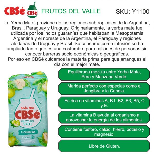 PAQUETE YERBA CBSE FRUTOS DEL VALLE 500 GR