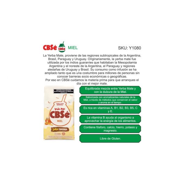 PAQUETE YERBA CBSE MIEL 500 GR