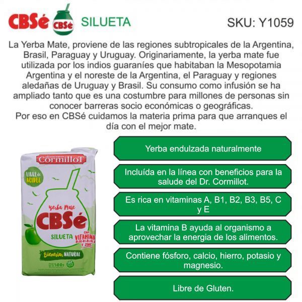 PAQUETE YERBA CBSE SILUETA 500 GR X 12 UNIDADES