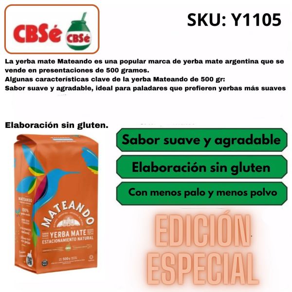 La yerba mate Mateando es una popular marca de yerba mate argentina que se vende en presentaciones de 500 gramos. Algunas características clave de la yerba Mateando de 500 gr: