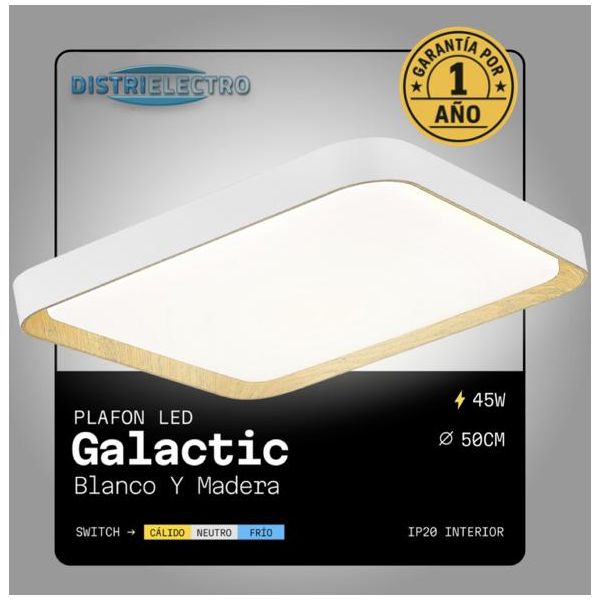 PLAFON LED ACERO BLANCO Y MADERA 45W GALACTIC DISEÑO CUADRADO MODERNO LEUK