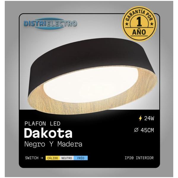 PLAFON LED ACERO NEGRO/MADERA 24W DAKOTA DISEÑO MODERNO LEUK