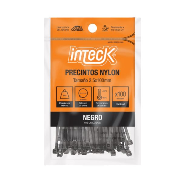 PRECINTO DE NYLON 2.5MM X100MM - NEGRO X 100 UNIDADES INTECK