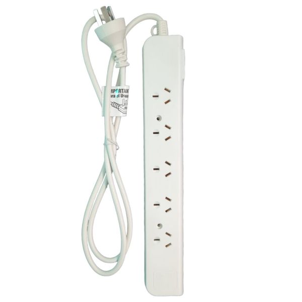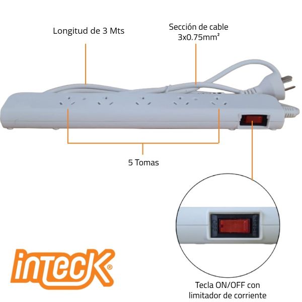 PROLONGADOR MULTIPLE 5 TOMAS BLANCO CON CABLE 3 MTS C/ PROTECTOR TERMICO