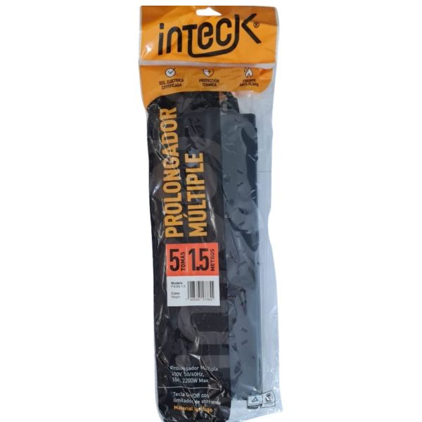 PROLONGADOR MULTIPLE 5 TOMAS NEGRO CON CABLE 1.5 MTS C/ PROTECTOR TERMICO