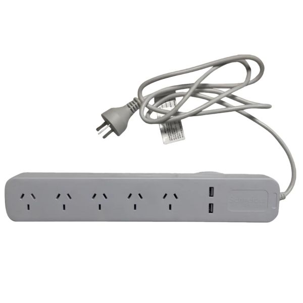 PROLONGADOR ZAPATILLA 5 TOMAS + 2 USB (1A Y 2A) BLANCO CON CABLE DE 1,5 MTS SCHNEIDER