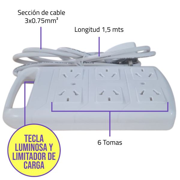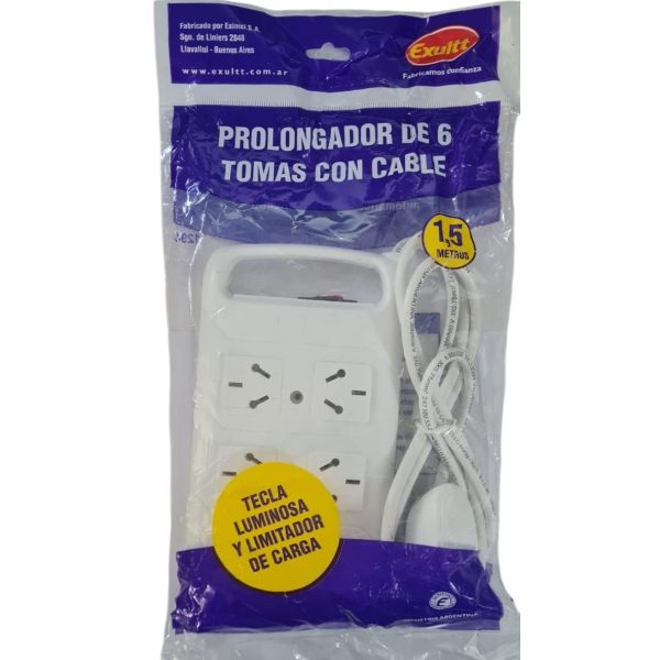PROLONGADOR ZAPATILLA 6 TOMAS ESPECIAL C/CABLE 1.5 MTS EXULTT