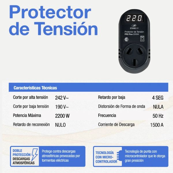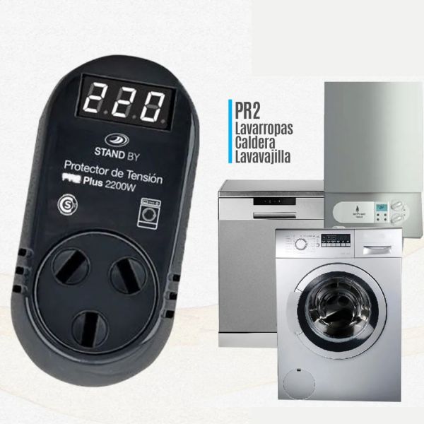 PROTECTOR DE TENSION 2200W LAVARROPA C/VOLTíMETRO STAND BY