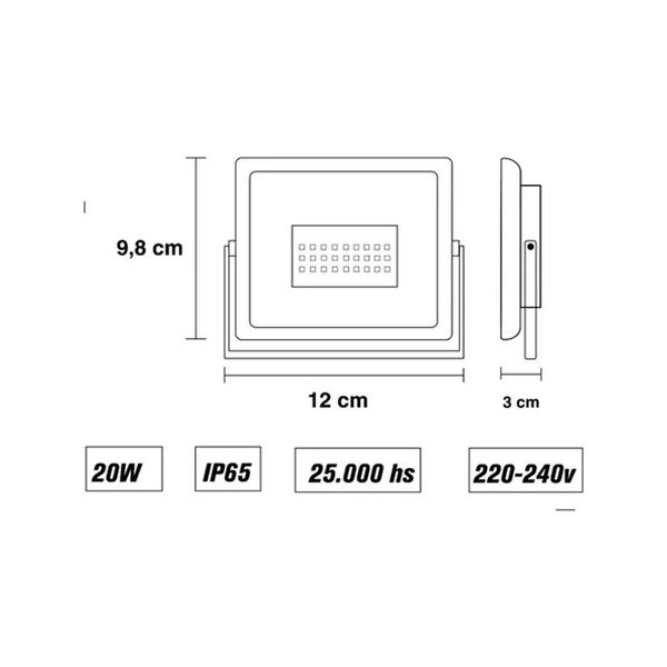 Reflector Led 20w alta potencia, incluye control remoto con posibilidad de seleccionar entre 16 colores, 4 modos de luz y dimerización. Estanco apto exterior. Vida util prolongada ideal para fiestas, eventos, jardines, piletas, cocheras, iluminación de hogares, galpones, terrazas, balcones, etc.