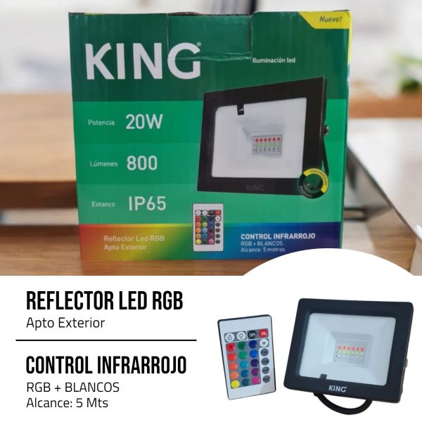 REFLECTOR LED 20W RGB KING 220V RGB+W C/ CONTROL REMOTO RF