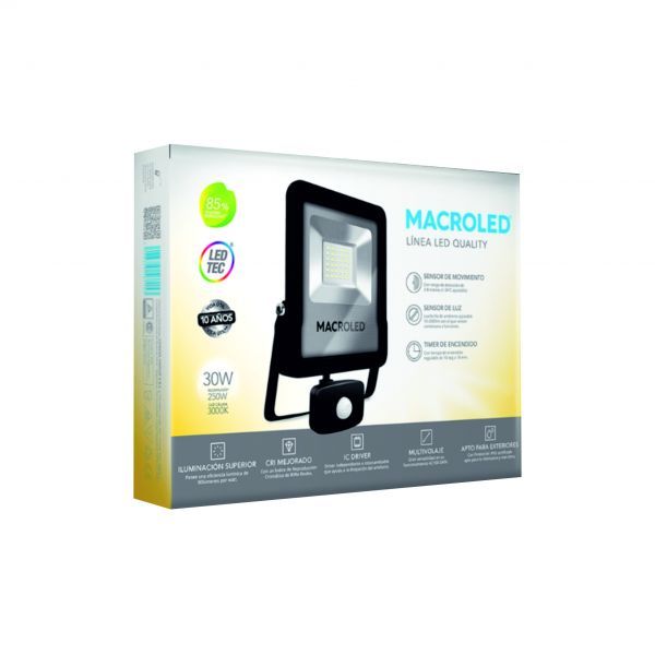 REFLECTOR LED SMD 30W IP65 CON SENSOR MOVIMIENTO MACROLED