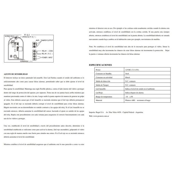 SENSOR ROTURA DE VIDRIO 9-16V CD CON LED INDICADOR PRONEXT