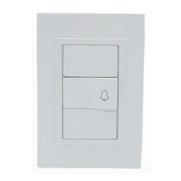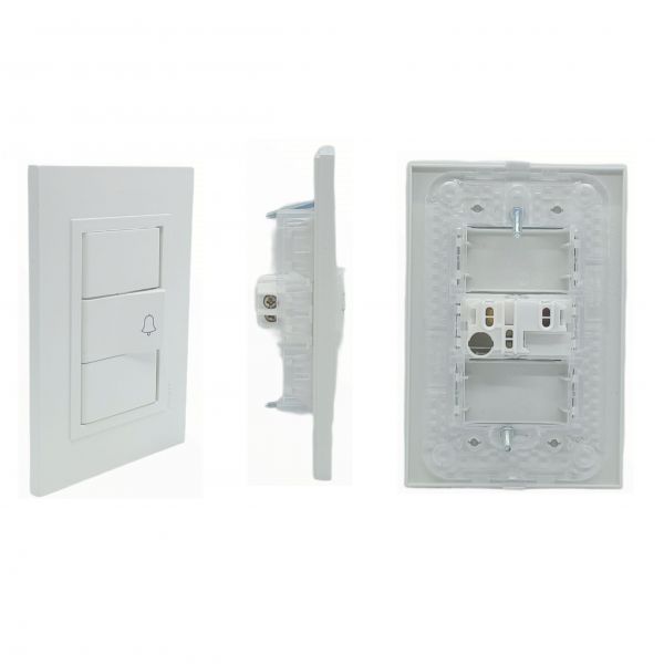 Tapa blanca rectangular + Bastidor de 3 módulos + 1 pulsador + 2 Módulos ciego.