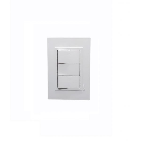 • colores disponiblesTapa blanca rectangular + Bastidor de 3 módulos + 2 Interruptores + 1 Módulos ciego.