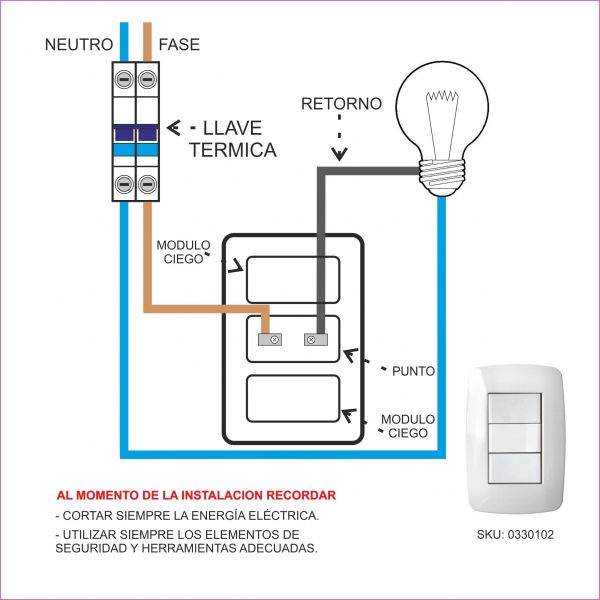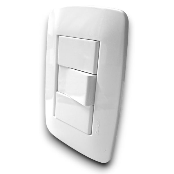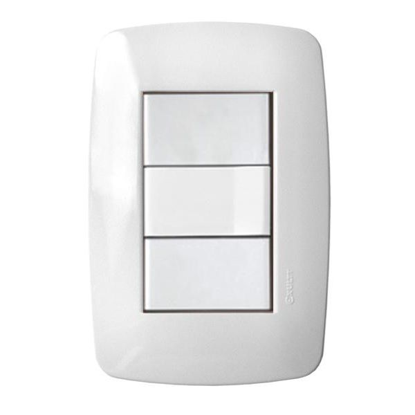 Tapa blanca rectangular + Bastidor de 3 módulos + 1 Interruptor + 2 Módulos ciego.