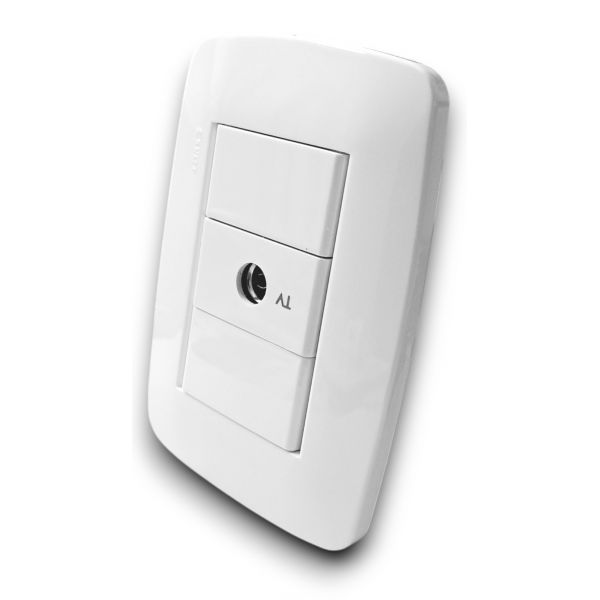 Tapa blanca rectangular + Bastidor de 3 módulos + 1 Tomacorriente CATV + 2 Módulos ciego.