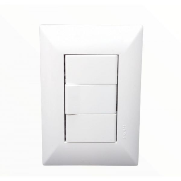 Tapa blanca rectangular + Bastidor de 3 módulos + 1 Interruptor combinado + 2 Módulos ciego.