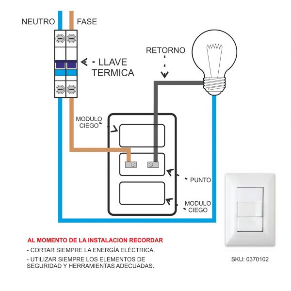 Tapa blanca rectangular + Bastidor de 3 módulos + 1 Interruptor + 2 Módulos ciego.