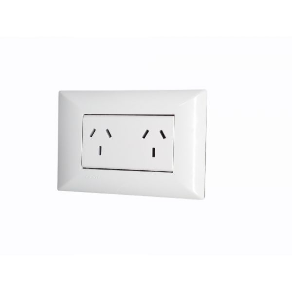 Tapa blanca rectangular + Bastidor de 3 módulos + 1 Tomacorrientes Doble con toma de tierra (3 modulos).