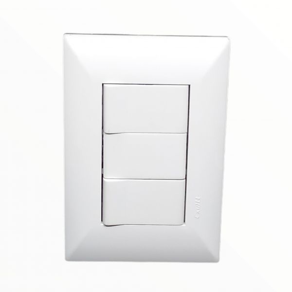 Tapa blanca rectangular + Bastidor de 3 módulos + 2 Interruptores + 1 Módulos ciego.
